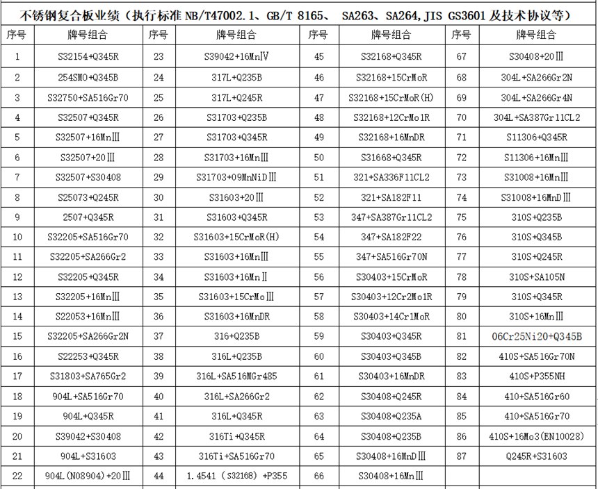 不銹鋼復(fù)合板材質(zhì)組合業(yè)績