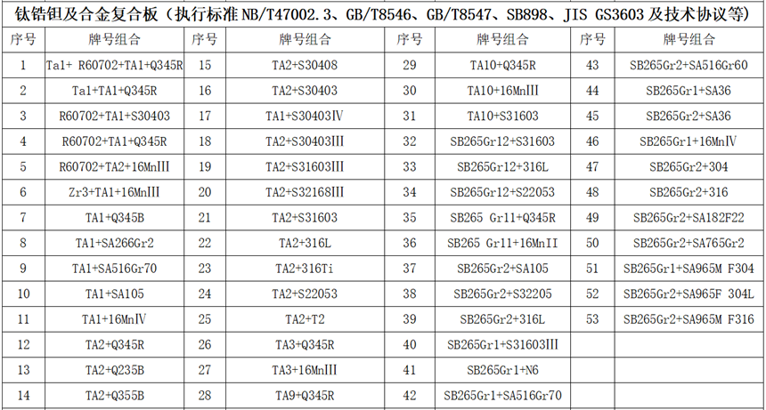 鋯復(fù)合板材質(zhì)組合業(yè)績(jī)